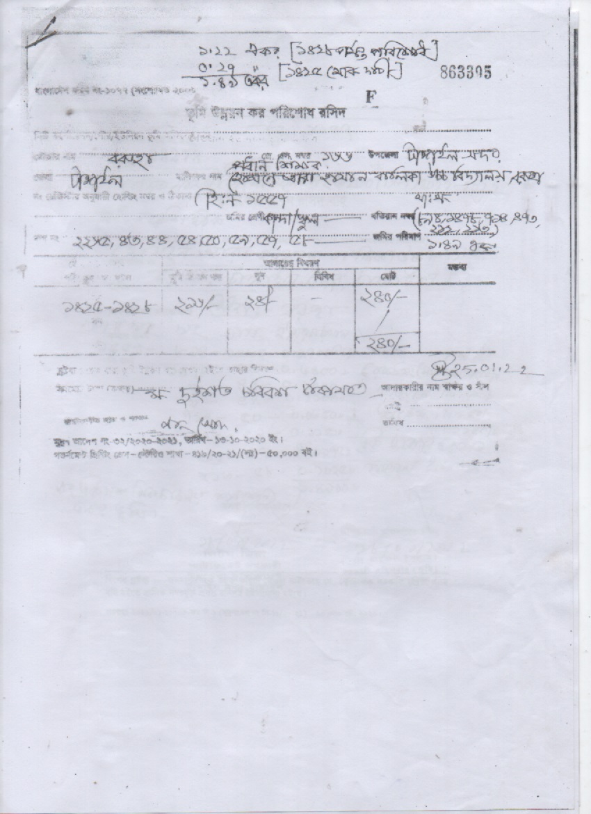 প্রতিষ্ঠানের জমির খাজনা রসিদ